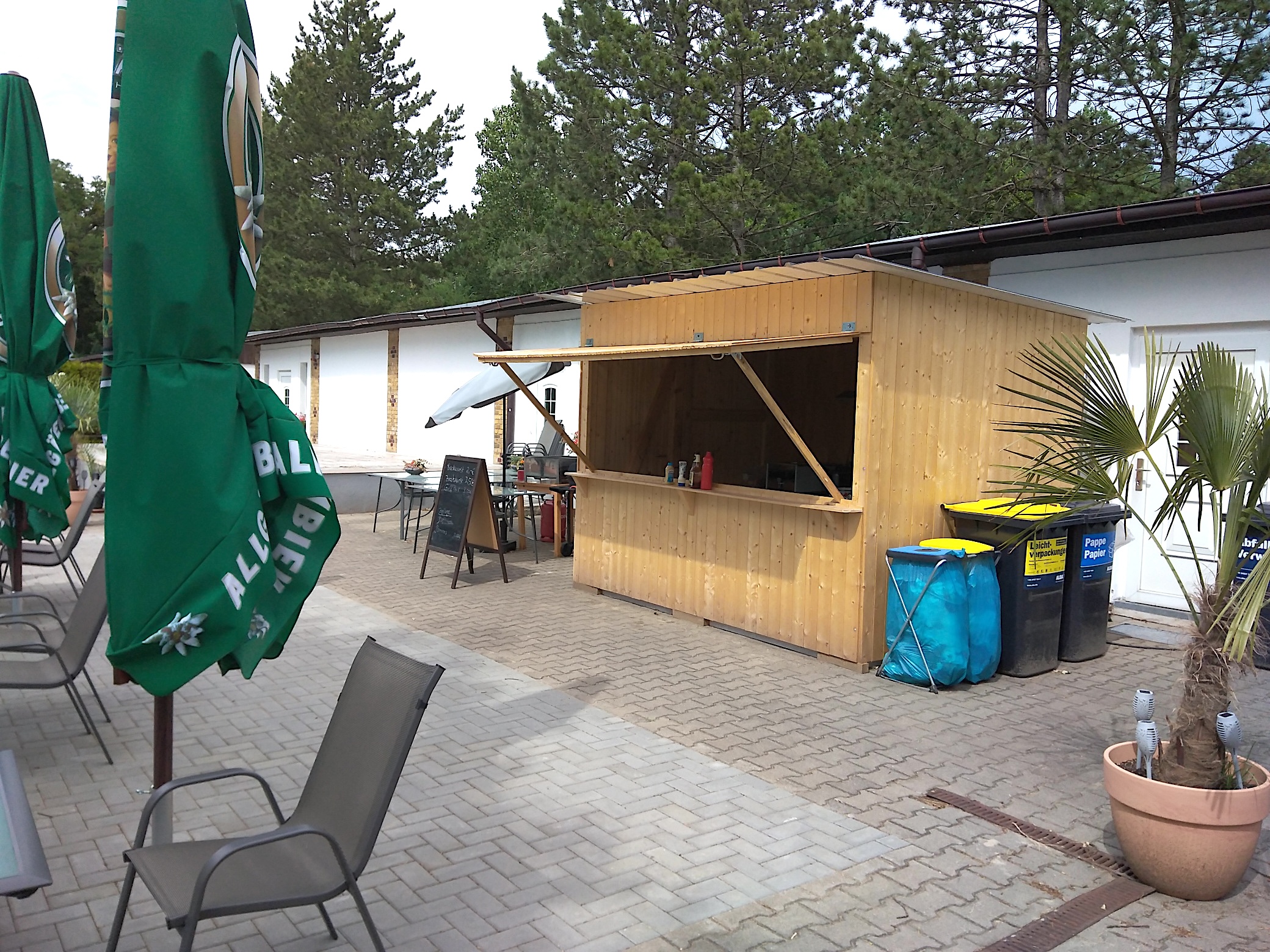 Im Sommer bieten wir unser leckeres Eis, selbst gebackenen Kuchen, Torten und Kaffeespezialitäten sowie Hausgemachtes vom Grill und Salate, Pizza & Döner (tageweise) an.